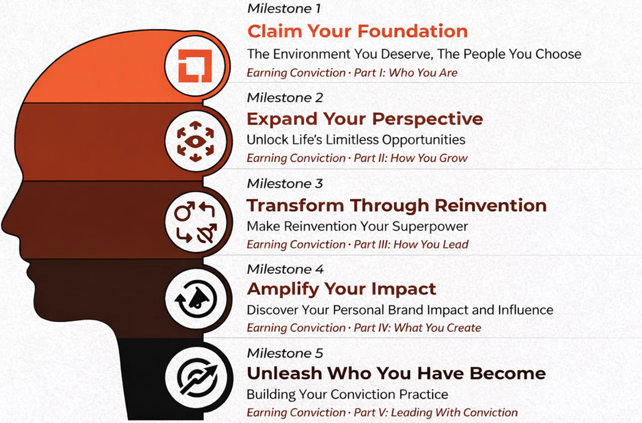 The gap between understanding your reinvention and being able to sustain it under pressure is conviction. Not motivation. Not knowledge. Conviction – earned through practice, built through five disciplines, and tested every time fear shows up and suggests you retreat to who you used to be. That gap is the work. And it is exactly why reinvention must be a daily practice, not a periodic event.